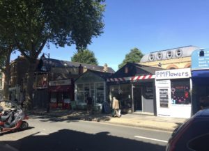 ロンドン・キューガーデン近くの商店街にて